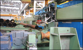 主要技術(shù)性能 設(shè)備類型:鋼管原地旋轉(zhuǎn),探頭直線移動跟蹤檢測。 檢測對象:管線管、高中壓鍋爐管、流體管、液壓支柱管、氣瓶管、油套管等。 鋼管鋼級:碳素鋼、低合金鋼、合金結(jié)構(gòu)鋼等 鋼管外徑:≥60mm 鋼管壁厚:≤15mm 鋼管長度:≥3m 鋼管表面狀態(tài):軋制與調(diào)質(zhì)狀態(tài)。 檢測標準及能力: 可有效的檢出鋼管內(nèi)外表面及內(nèi)部的各種縱、橫向缺陷,包括重皮、折疊、孔洞等自然缺陷。 滿足GB/T5777及YB/T4082標準要求,并可同時滿足美國石油學會API標準的有關(guān)條款要求。 檢測靈敏度可精確到鋼管壁厚5%的人工凹槽。 生產(chǎn)能力:每分鐘可檢測鋼管長度為30米 工藝概述: 待檢測的鋼管經(jīng)V型輥道或過渡臺架,進入探傷區(qū),落在旋轉(zhuǎn)托輥上,旋轉(zhuǎn)托輥驅(qū)動鋼管原地旋轉(zhuǎn),探傷小車上的四組探頭(二縱二橫),按著確定的位置依次落下,并在探傷小車的拖動下沿著管體方向直線前進,對管體表面進行100%的掃查,當探頭到達管端時,四組探頭又依次抬起,如此循環(huán)就實現(xiàn)了管體的連續(xù)檢測。 自動化控制: 電控系統(tǒng)采用PLC可編程序控制器,可根據(jù)需要實現(xiàn)系統(tǒng)的手動與自動控制。可根據(jù)儀器的指令對鋼管進行分選,對有傷的位置適時標記。管理系統(tǒng)采用工控機對整個檢測過程進行全面監(jiān)控,對檢測結(jié)果進行記錄整理、存儲、打印,傳輸,畫面可顯示鋼管的運行狀態(tài)。 |